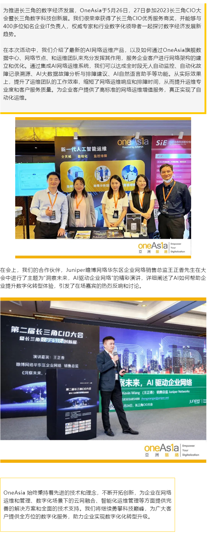 OneAsia携手Juniper出席2023长三角CIO大会
