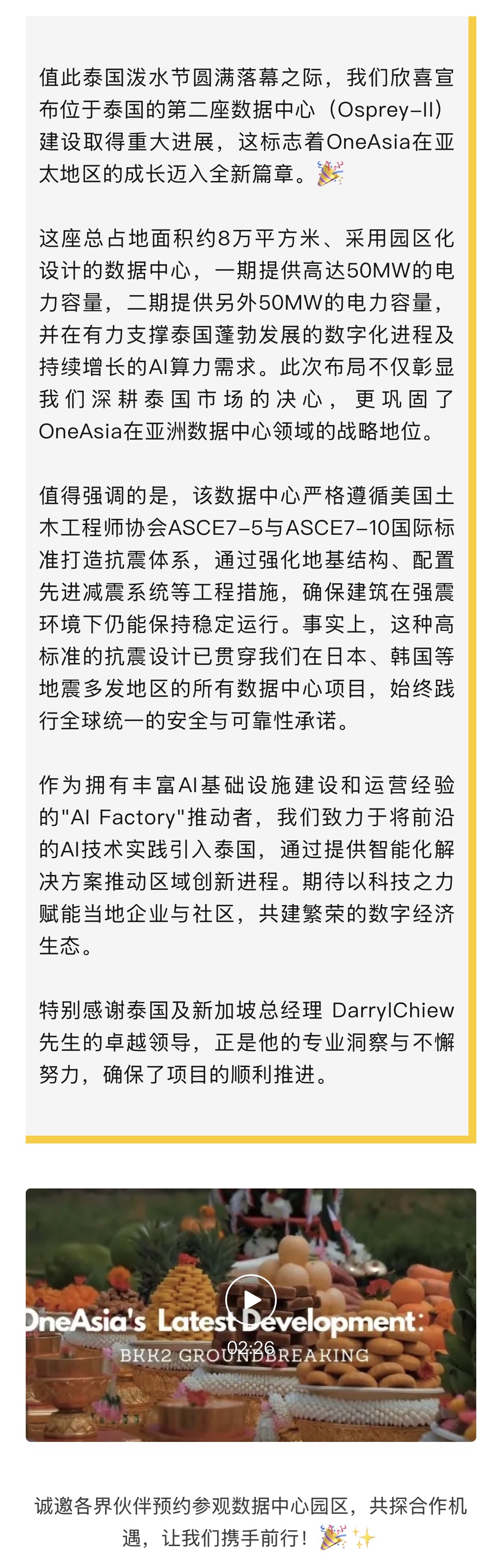 OneAsia泰国第二座数据中心:抗震筑基·智算未来