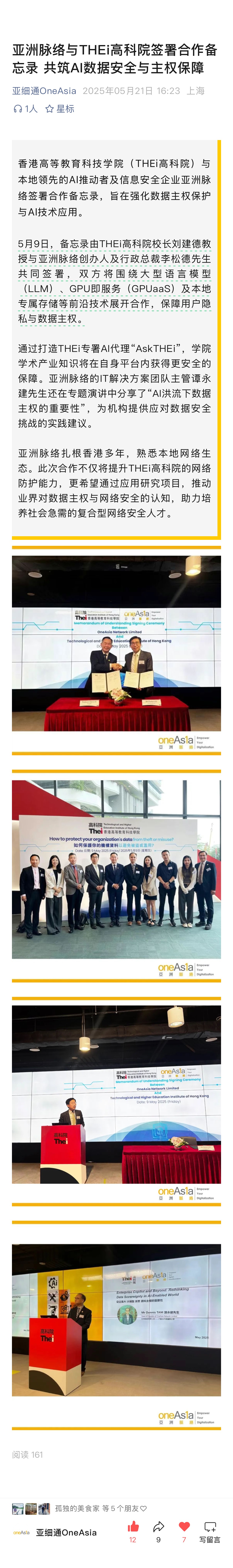 亚洲脉络与THEi高科院签署合作备忘录 共筑AI数据安全与主权保障