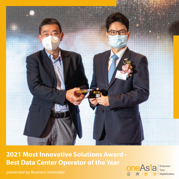 OneAsia 很荣幸获得由 Business Innovator 颁发的“2021年度创新商业方案大奖-年度最佳数据中心运营商”,并由技术及业务总监 梁锡波先生代表 OneAsia 接受奖座。